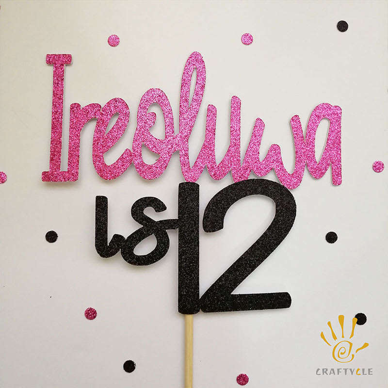 Cake Topper Custom Personalised Cake Topper Pink Black Glitters